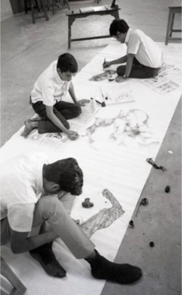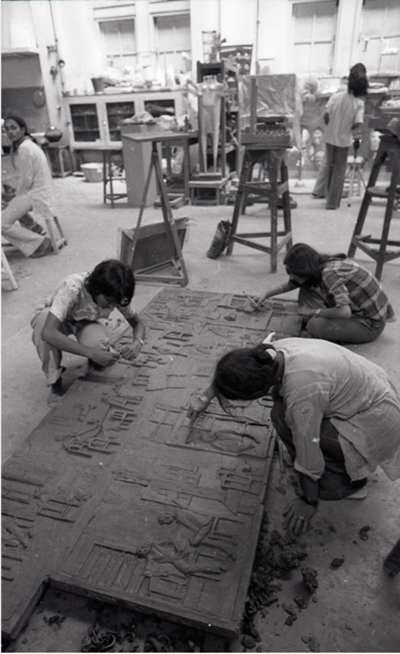 Artists on campus at the Faculty of Fine Arts in Baroda, c. 1970. Images courtesy of Asia Art Archive and Jyoti Bhatt.